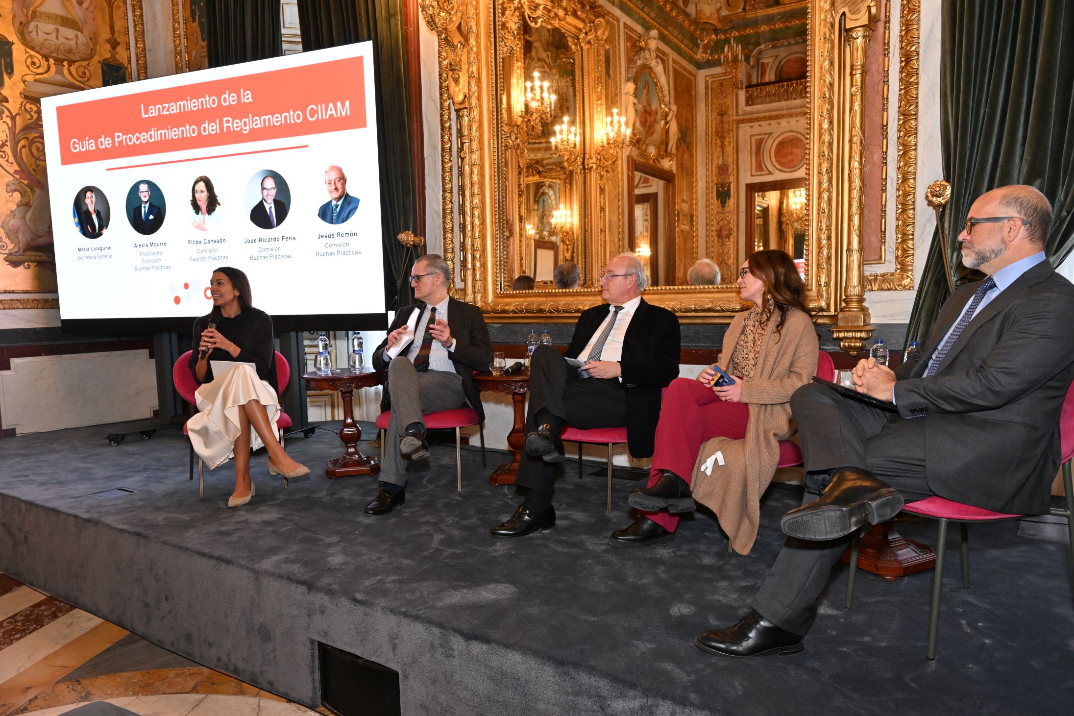 Durante el acto se celebró una mesa redonda moderada por la secretaria general de CIIAM, Marta Lalaguna, en la que participó el presidente de la Comisión de Buenas Prácticas del Centro, Alexis Mourre, y tres de los miembros de esta Comisión, Filipa Cansado, José Ricardo Feris y Jesús Remón.