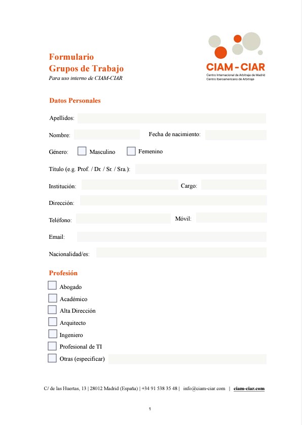 Los Grupos de Trabajo son el punto de conexión de CIAM-CIAR con los usuarios finales del arbitraje. La flexibilidad del arbitraje permite adaptar el procedimiento a la disputa y a las particularidades del sector de actividad. Los Grupos de trabajo ayudan a CIAM-CIAR en la comprensión de las necesidades de los sectores que más utilizan el arbitraje.