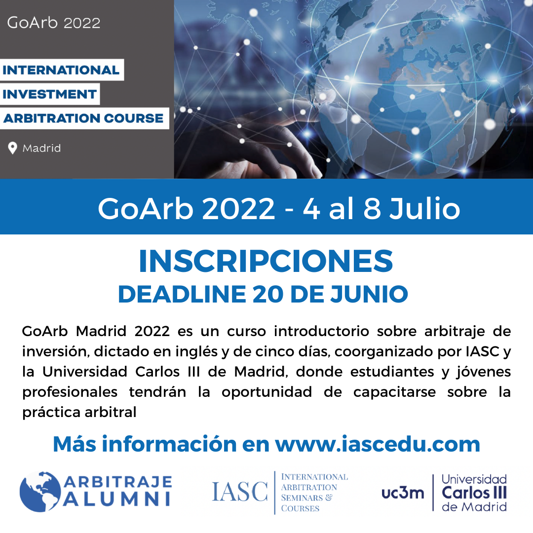 📣 ¡Ya están abiertas las inscripciones para el curso International Investment Arbitration de GoArb 2022! 💥