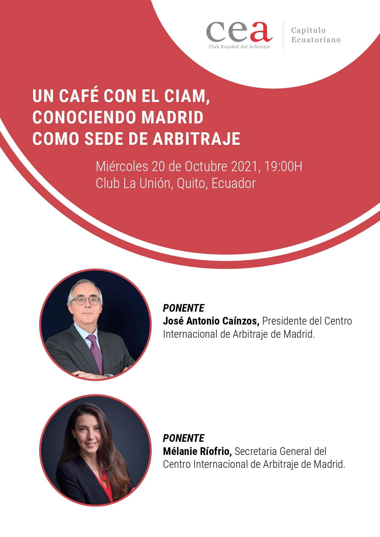 CIAM ha establecido un plan de visitas por Latinoamérica, y Ecuador será el primer país de la región. Esta decisión refleja la progresiva internacionalización de las empresas ecuatorianas, a las que CIAM pretende respaldar ofreciendo sus servicios. La delegación de CIAM en Ecuador estará conformada por José Antonio Caínzos, presidente de CIAM, y Mélanie Riofrio Piché, secretaria general de CIAM. Riofrio Piché es la primera mujer designada por Ecuador en la lista de árbitros del Centro Internacional de Arreglo de Diferencias relativas a Inversiones (CIADI).